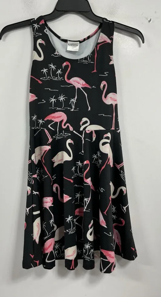 This is a stylish black fit and flare dress with flamingos from the brand Cow-cow. It is a sleeveless pullover dress with a crew neck neckline and a knee-length hem. The size is small, making it a fashionable choice for women looking for a flattering and versatile dress for various occasions. Approximate measurements; Pit to Pit 14.5” (29”) Waist 12.5” (25”) Length 33” This dress is pre owned and looks to be in excellent condition!