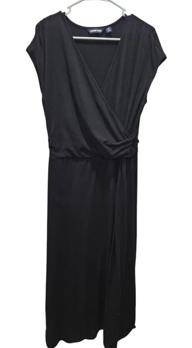 Woman's Lands' End Black Faux Wrap Flattering Ruched elastic Waist Maxi Dress Sz S Pit to pit 17 Wai... Show more