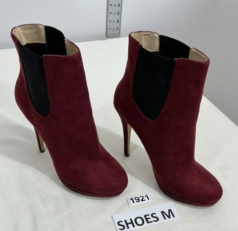 Elevate your shoe game with these gorgeous maroon color ankle boots from Michael Antonio. With a pull-on closure and platform style with a 5” stiletto heel, they're both stylish and comfortable. The faux suede upper material adds a touch of luxury, while the medium calf width ensures a perfect fit. These boots are perfect for any occasion, whether you're dressing up or down. Add them to your wardrobe today! These boots are pre owned and in excellent condition!
