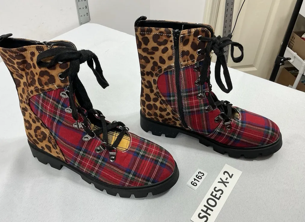 These Rouge ankle boots are perfect for women who want to make a statement with their footwear. The 1.5” chunky heel gives them added confidence, while the red plaid and brown animal print adds a touch of flair to any outfit. With a lace-up and zip closure, these boots are both stylish and practical. The ankle shaft style and round toe shape make them comfortable for all-day wear, and the fabric upper material ensures durability. Whether you're going for a bold look or simply adding a pop of color, these boots are sure to elevate your style. These boots are pre owned and look to be in excellent condition! They look new.