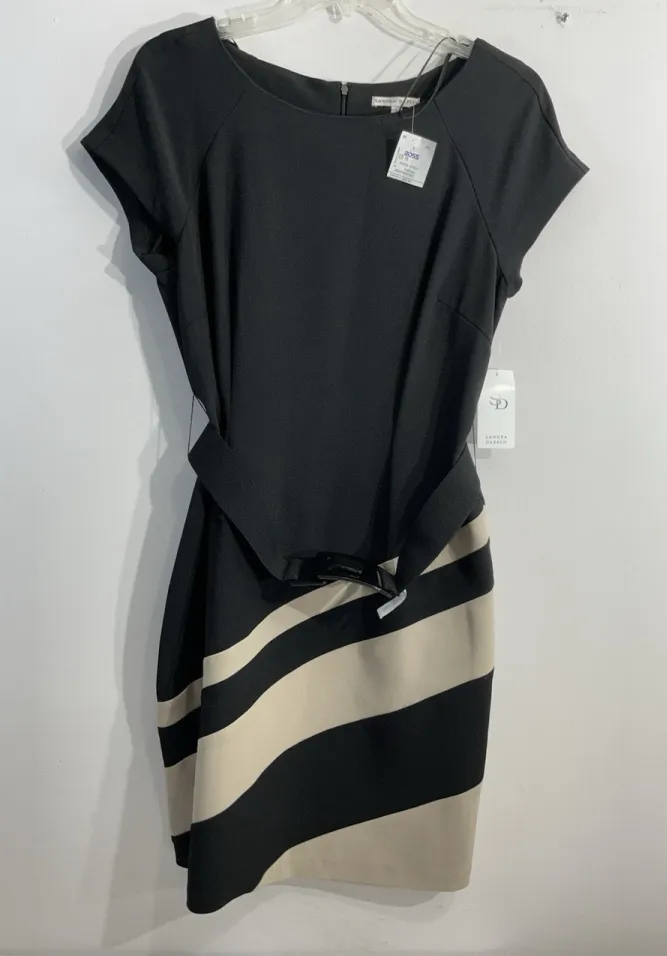 The Sandra Darren Fit & Flare Midi Dress in size 16 features a flattering fit with a belted waist and cap sleeves, perfect for a sophisticated and stylish look. The black and beige color combination adds a touch of elegance, making it a versatile piece for various occasions. The midi length provides a balanced silhouette, while the brand's reputation for quality ensures a well-made garment that is sure to impress. Made from polyester/spandex fabric. Measurements; Pit to pit 20” (40”) Length 40.5” This dress is NWT!