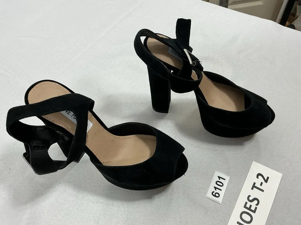 This is a pair of black Steve Madden Jillyy platform dress shoes for women in size 6m with a peep to... Show more