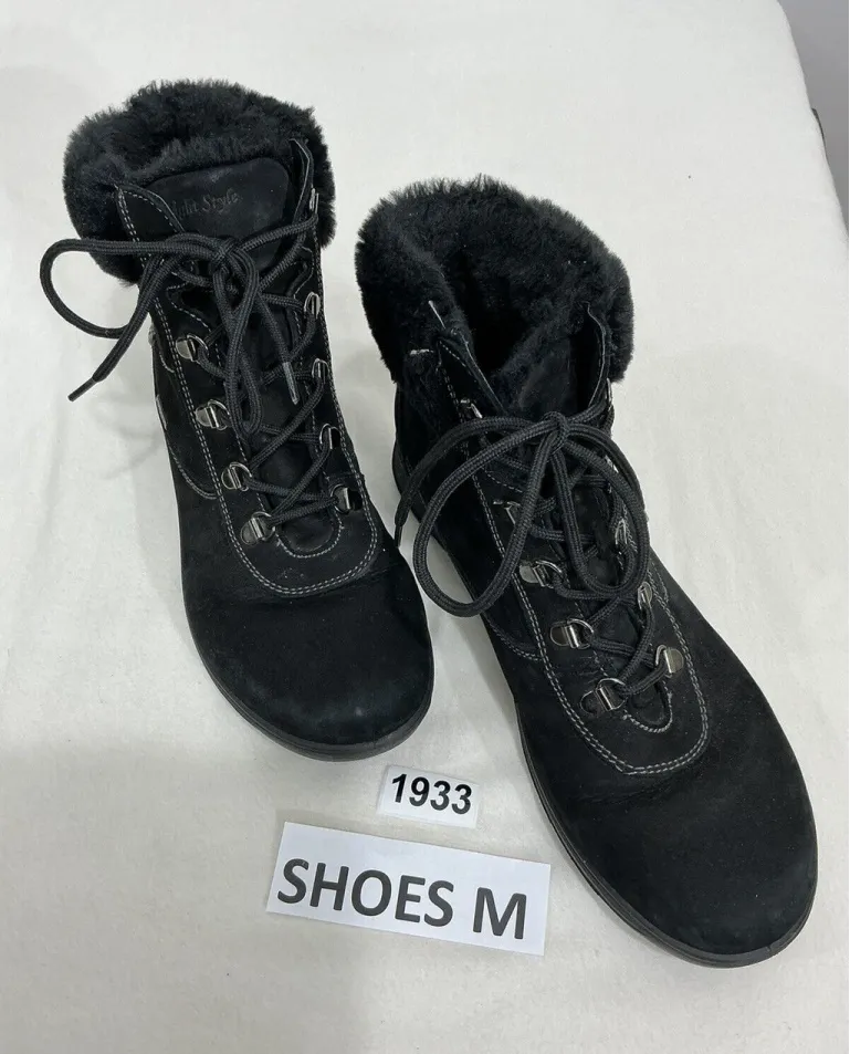 Elevate your winter wardrobe with these stylish black suede lace-up boots from Diana Ferrari. Keep your feet cozy and fashionable with the added bonus of a fur lined interior. Perfect for women who want to stay warm and comfortable during the colder months, these boots are designed with a bootie style that is both versatile and trendy. Crafted with high-quality suede materials, these boots are not only durable but also long-lasting. The suede upper material is perfect for adding a touch of sophistication to any outfit. These boots are ideal for anyone size 8 who wants to stay warm while still looking chic. These boots are pre owned and in excellent condition!