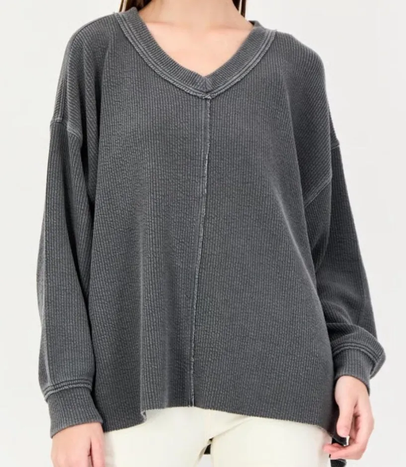 Women Grey ribbed V-neck sweater with long sleeves and relaxed fit size large NEVER WORN Gray - $30 - From Emma