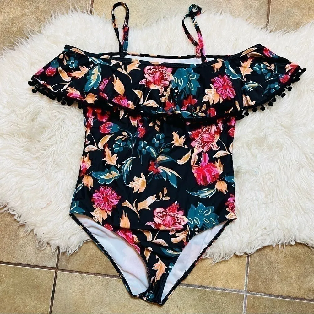 Women Off Shoulder Swimsuits High Waist Bathing Suits Ruffle L. Floral one piece swimwear. Perfect for vacation , beach or pool time. Used once. Tags. Curvy slimming swim suit swimming beach belly hides flowers