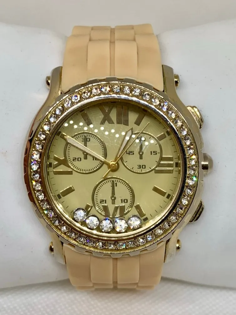 Women quartz watch floating crystals dial 40mm round analog silicone running - $15 - From Watch