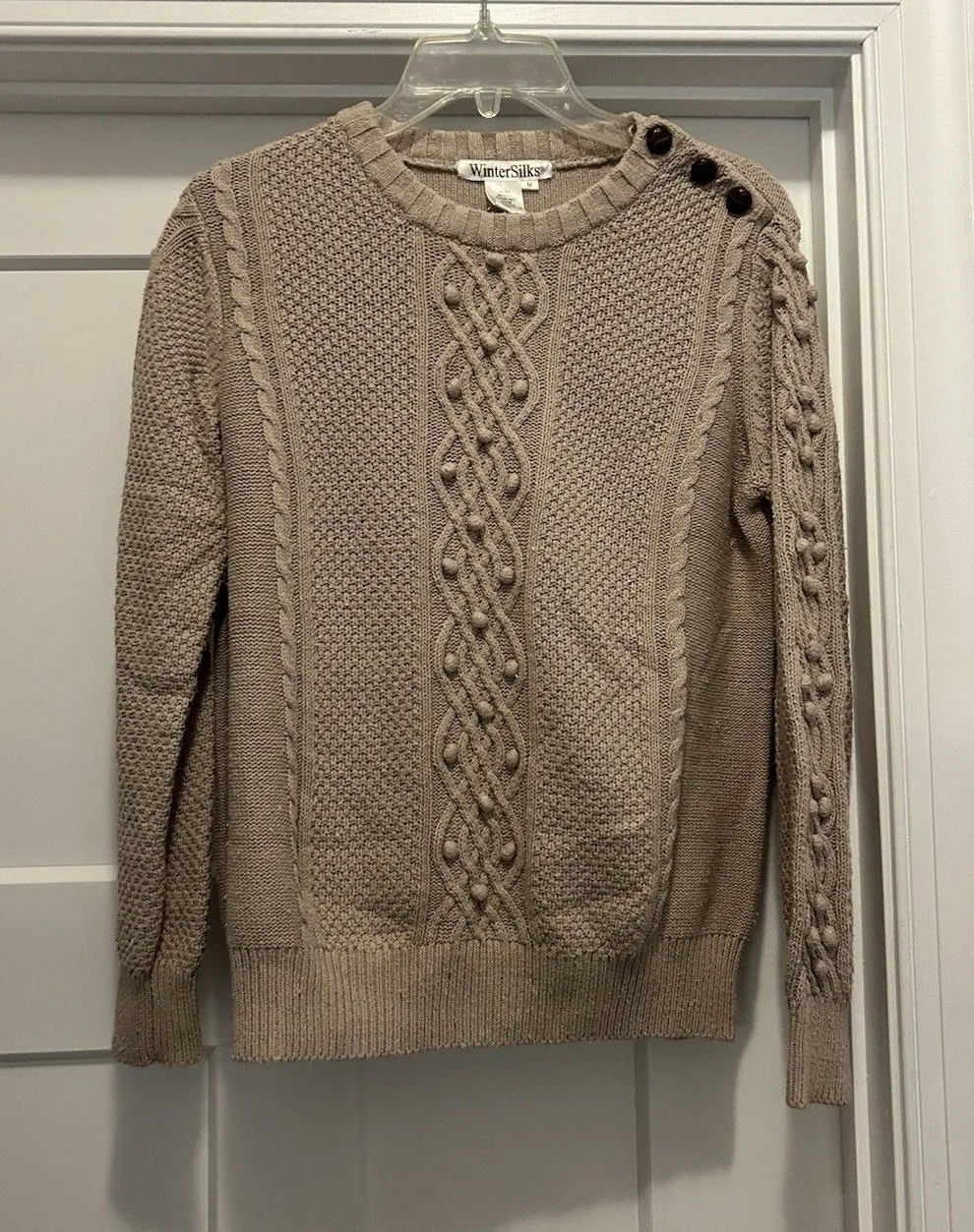 This Women's Winter Silks Size Medium Cable Pom Knit Sweater is a classic and cozy choice for the wi... Show more