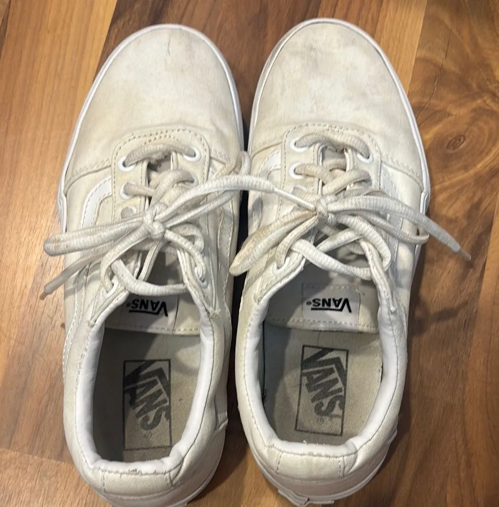 Women’s 8.5 platform Vans White Canvas Sneakers Classic Skate Style good used condition. They would... Show more