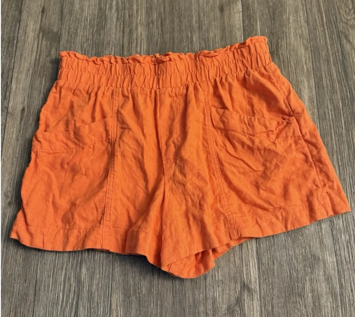 These A New Day orange linen blend shorts in size small feature a relaxed fit with a 3" inseam and a... Show more