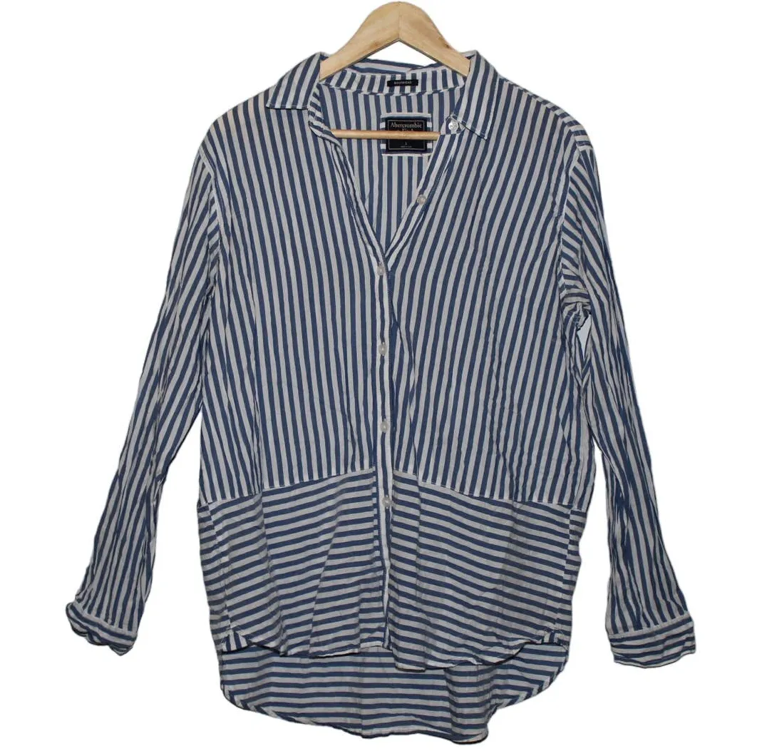 Women's Abercrombie & Fitch Blue White Striped Cotton Viscose Collared Long Sleeve Button Down Shirt... Show more