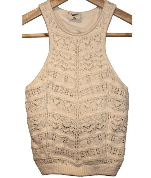 Women's Abercrombie & Fitch Cream Knit Crochet Cotton Viscose Pull On Elastic Stretch Crop Top Racer... Show more