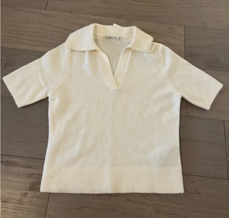 This is a women's Abercrombie & Fitch short-sleeve sweater in a cream color, size XS, as indicated b... Show more