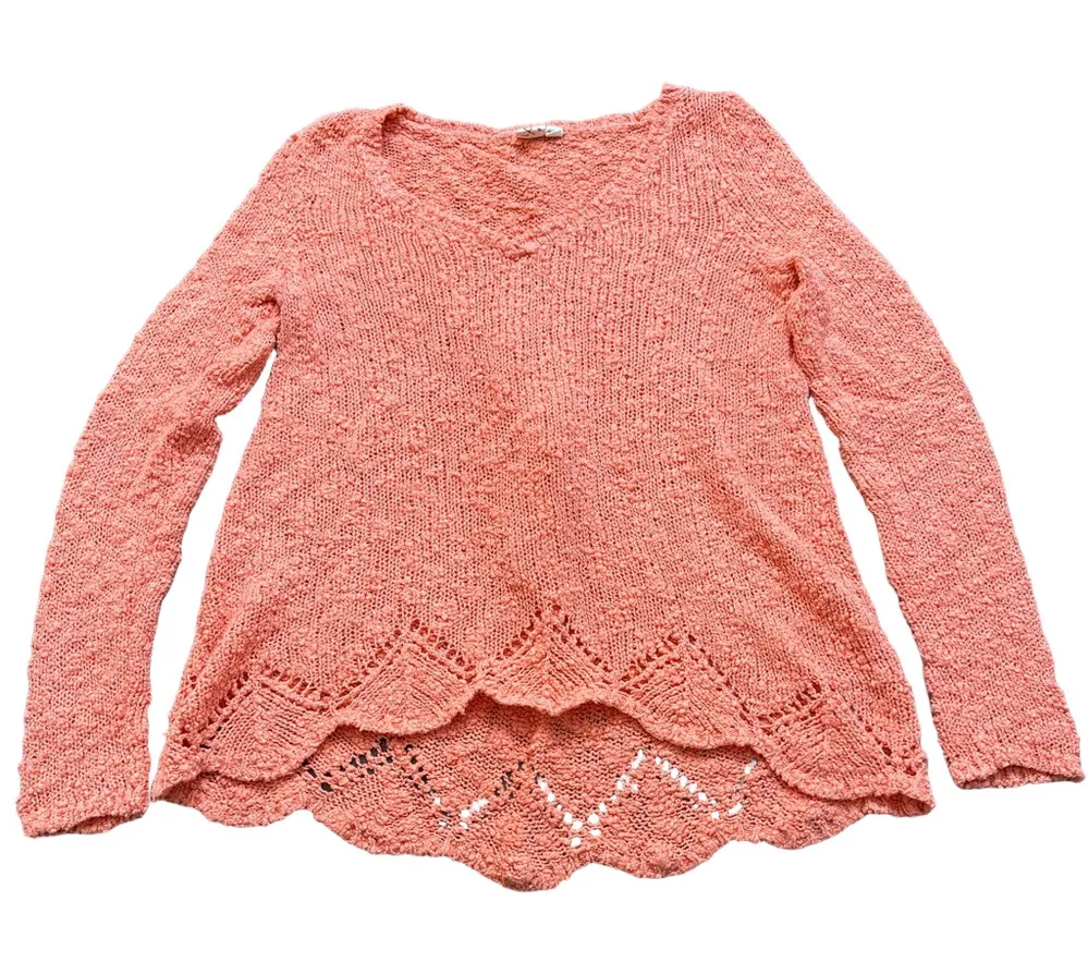 pre-owned women's V-neck sweater in a coral color, size small, from Anthropologie. It features a tex... Show more