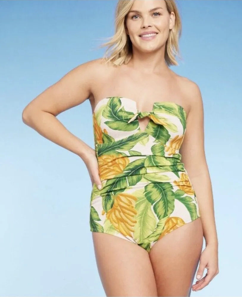 High-coverage one-piece swimsuit with allover tropical pattern • Molded cups for comfortable coverage and shaping • Cute front keyhole detail with knotted tie in center • Ruched sides and high-coverage bottom for easy movement and flattering fit Size Xtra Large (16) Womens. 40C/D Waist 96.5 cm Torso 167.6 cm Hip 116.8 cm Retail $40 - see all pics for any wear. condition - From Smoke Free Environment - Item shown the exact item you will receive.