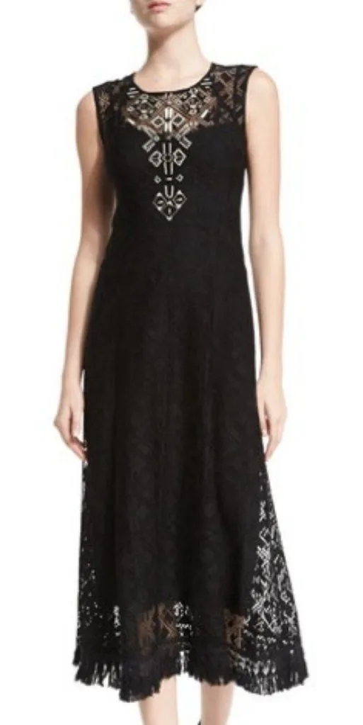 ULTRA RARE Nanette Lepore Luxury line - vintage style geometric lace dress -Bamboo beaded front -S... Show more