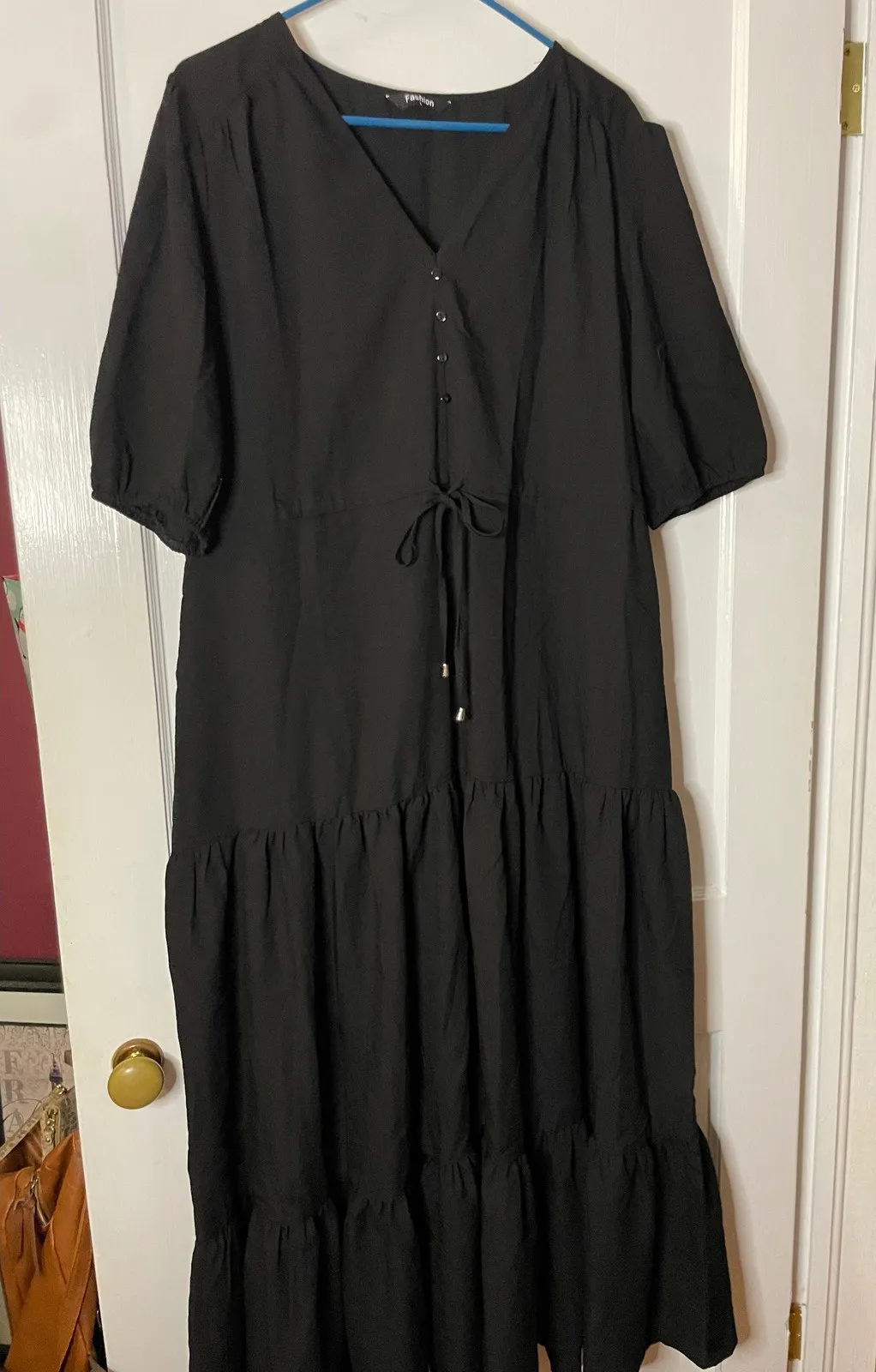 Measurements: • Pit to Pit: 22 in • Waist (un-cinched): 22in • Length (shoulder to hem): 55in Style: Maxi, Sundress, Trapeze & Swing Dress Length: Long Department: Women Sleeve Length: Half Sleeve Pattern: Solid Occasion: Casual, Travel Material: Viscose, Polyester, Nylon Fabric Type: Woven Theme: Boho, Hippie, Nature Neckline: V-Neck Season: Summer, Spring, Fall Sleeve Type: Puff Sleeve Closure: Tie Keywords: black maxi dress, tiered dress, V-neck dress, tie waist dress, puff sleeve dress, casual dress, boho dress, women's dress, summer dress, midi dress, plus size dress, long dress, flowy dress, day dress X-811