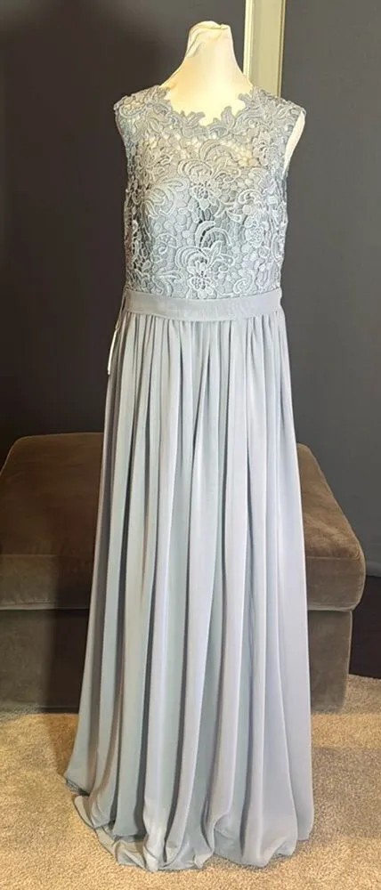 Women’s Blue/Gray Chiffon & Lace Full Length Formal Dress with Zip Up Back The color looks like a Blue/Gray mix to me Size 12 - please see pictures for approximate lay flat measurements and Size chart Great dress for all formal occasions - Bridesmaid, Mother of the Bride, Mother of the Groom, Celebration, Ceremony, Party, Work Event or Wedding Guest. The last photo is of the same dress but a different color to give an idea of how it looks on a person NWT - New with Tags *Color may vary based on lighting and device used to view this item 2169B57