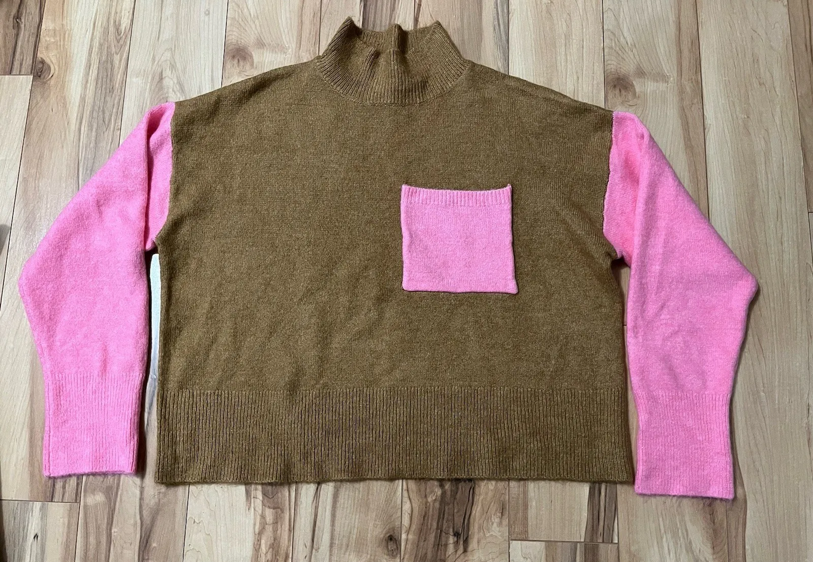 Excellent preowned condition Women's Brown & Pink Color Block Knit Relaxed Fit Crop Sweater Med Pat... Show more