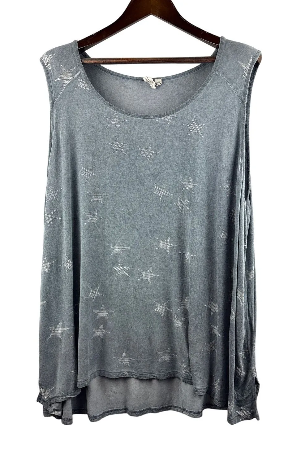 This women’s Cable & Gauge long slate grey tank that has a star pattern and is made from a very soft stretchy material. It’s a size 3X. Measurements: Length 32” Pit to pit 29”