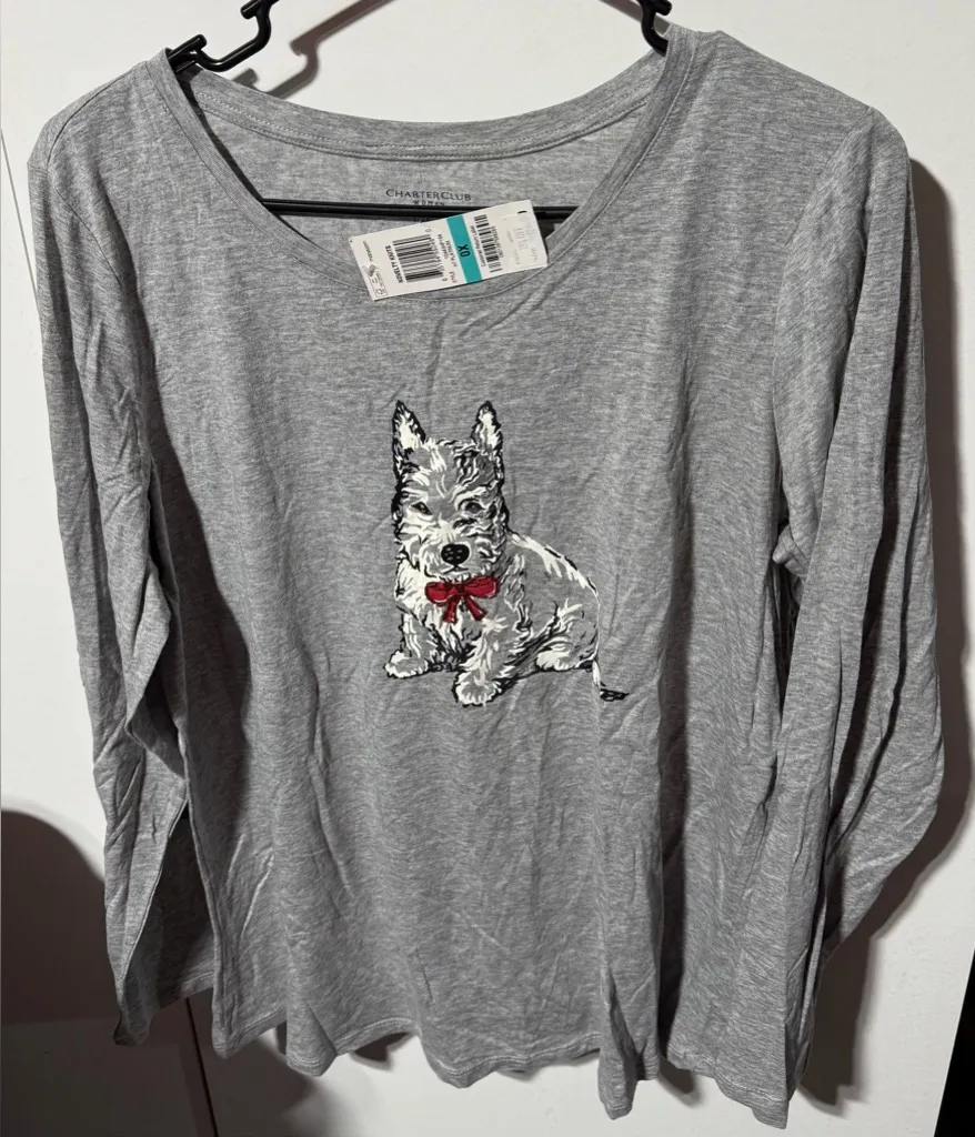 Women’s Charter Club 0X Longsleeve Tee With Dog Design Gray NWT - $15 New With Tags - From Xavier