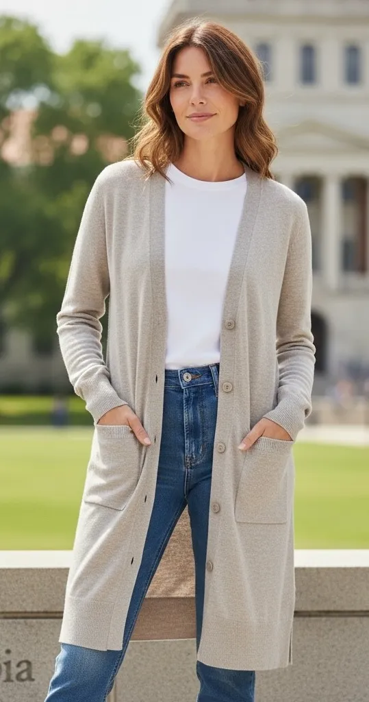 This women's Cielo beige v-neck long sleeve cardigan duster/dress in size M is a versatile and styli... Show more