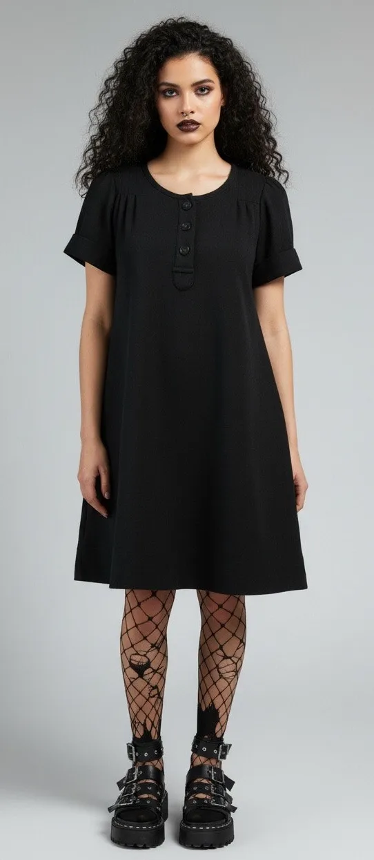 Women’s Cotton Minimalist Puff Sleeve Shift Dress Size Medium Black EUC This is cotton fabric.... Show more