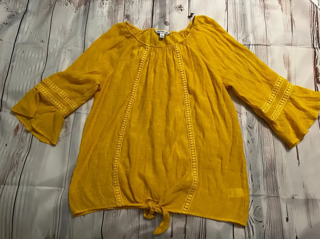 This pre-owned women's yellow blouse by COUNTERPARTS, size XL, features a round neckline and long be... Show more