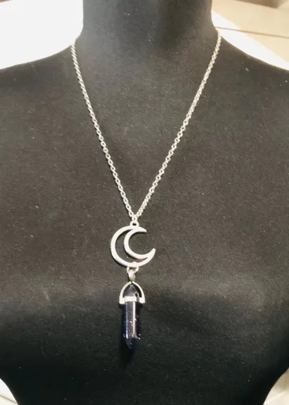 Women's Crystal Moon Stone Chakra Pendant Necklace Silver Metal Jewelry NWOT Black - $20 - From Maria