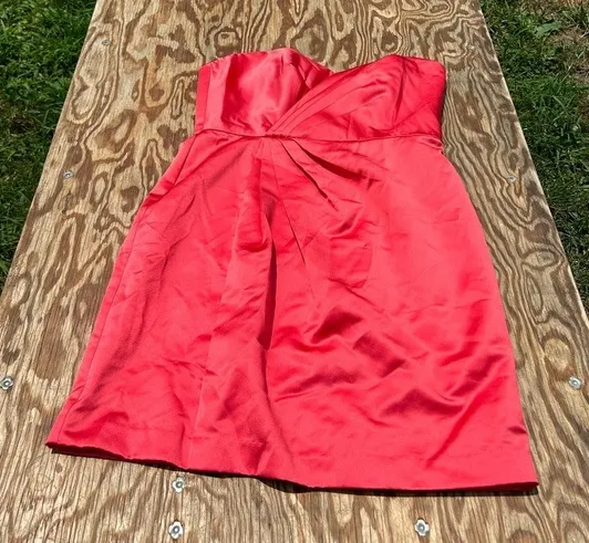 David’s bridal coral strapless dress size 12. Preowned great condition. 100% polyester. 19 in pit to... Show more