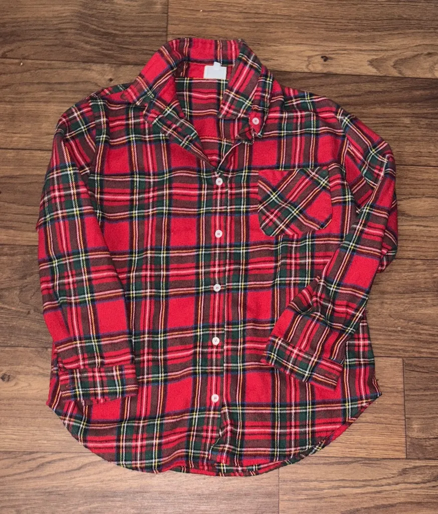 This stylish plaid tartan red shirt is perfect for any occasion. Red and green color which is perfect and festive for the fall and winter Christmas holiday seasons. It has a single pointed collar with a full front button down and buttons on the bottom of the sleeve cuffs as well. It has a rounded bottom hem. One chest pocket as well.