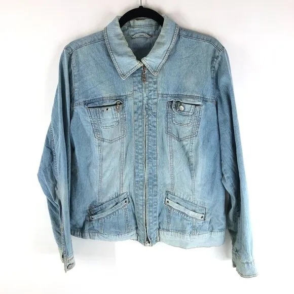 Item is in pre-owned condition with slight staining on sleeves end, please see photos. No size tag but jacket measures at a size L Armpit to armpit: 21.5" Sleeve (shoulder to hem): 24.5" Length (shoulder to hem): 24" Comes from a smoke free home. Feel free to ask any questions you may have. Thanks for looking! Size: Womens L Condition: Pre-Owned Good Slight staining on sleeves end, please see photos. No size tag but jacket measures at a size L