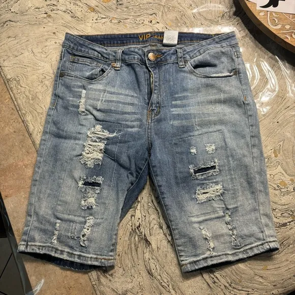Women’s denim Jean distressed ripped shorts Size 13/14 Brand is Vip In great Blue - $12 - From Angelica