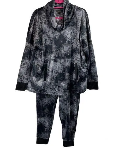 Womens Donna Karan Sleepwear Black Velour Cowlneck Sweatshirt Pants Lounge Set Size M - $50 - From Faith