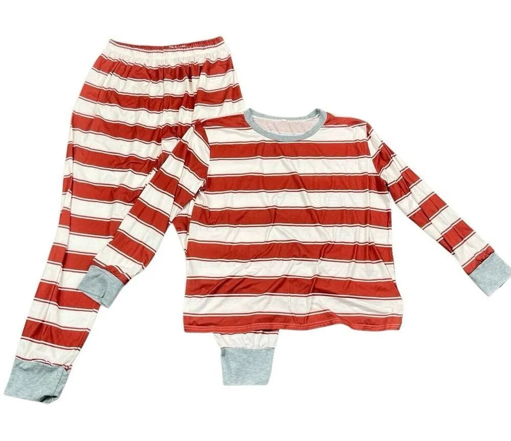 Women's Family Pajama Striped Xmas Christmas Matching Sleepwear Set 2XL. Measurements in photos. In good, pre-loved (used) condition. Comes from a smoke free home. Actual color may vary due to differences in lighting and computer monitor/cell phone screens.
