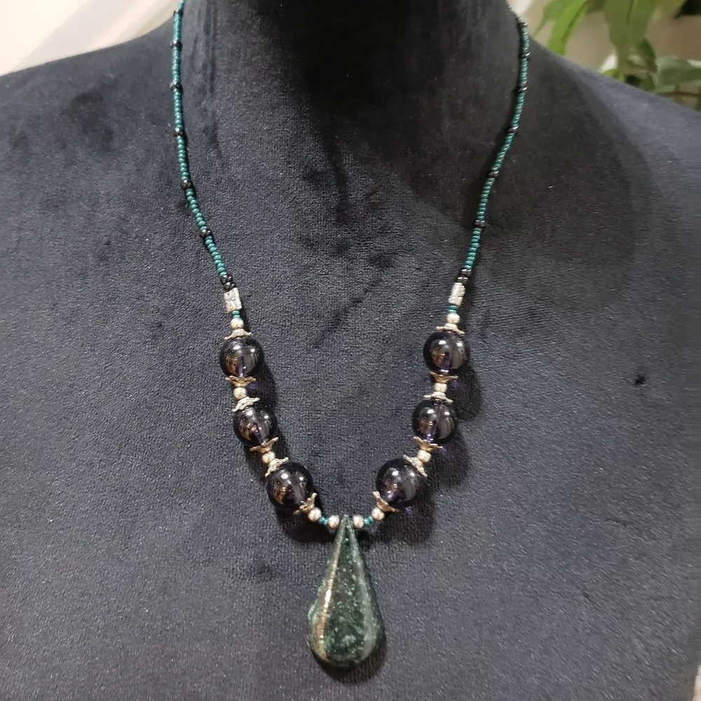 Color: Black Green Type: Necklace Department: Women's Occasion: Partywear, Anniversary, Birthday, Christening, Christmas, Engagement, Graduation, Mother's Day, Valentine's Day, Wedding Disclaimer: Please be aware that vintage/estate jewelry items may show signs of wear and age due to their historical nature. Any imperfections or variations in appearance should be considered part of their charm and uniqueness. It's recommended to carefully examine the item's condition and ask for detailed information before making a purchase decision.
