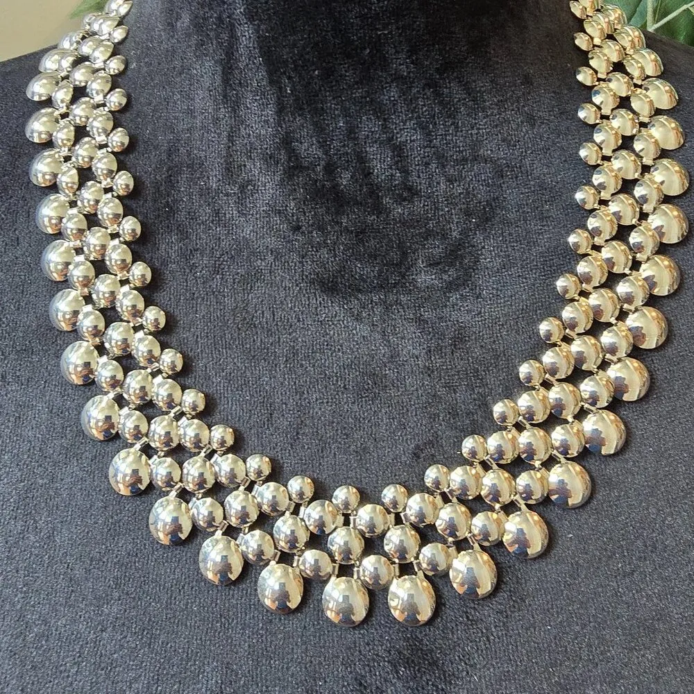 Women's Fashion Silver Tone Glossy Metal Exaggerated Linked Necklace with Lobster. Color:Silver Type: Necklace Department: Women's Occasion: Partywear, Anniversary, Birthday, Christening, Christmas, Engagement, Graduation, Mother's Day, Valentine's Day, Wedding Disclaimer: Please be aware that vintage/estate jewelry items may show signs of wear and age due to their historical nature. Any imperfections or variations in appearance should be considered part of their charm and uniqueness. It's recommended to carefully examine the item's condition and ask for detailed information before making a purchase decision.