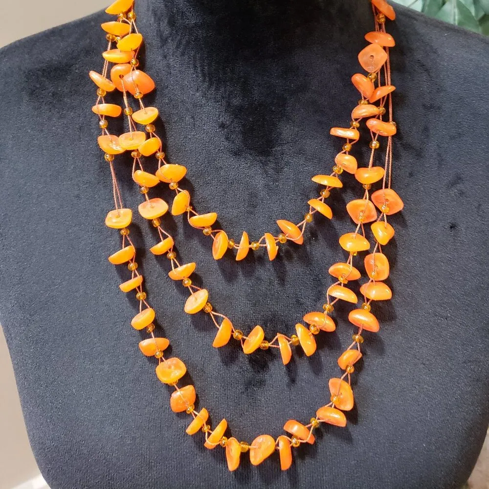 . Color: Orange Type: Necklace Department: Women's Occasion: Partywear, Anniversary, Birthday, Christening, Christmas, Engagement, Graduation, Mother's Day, Valentine's Day, Wedding Disclaimer: Please be aware that vintage/estate jewelry items may show signs of wear and age due to their historical nature. Any imperfections or variations in appearance should be considered part of their charm and uniqueness. It's recommended to carefully examine the item's condition and ask for detailed information before making a purchase decision.