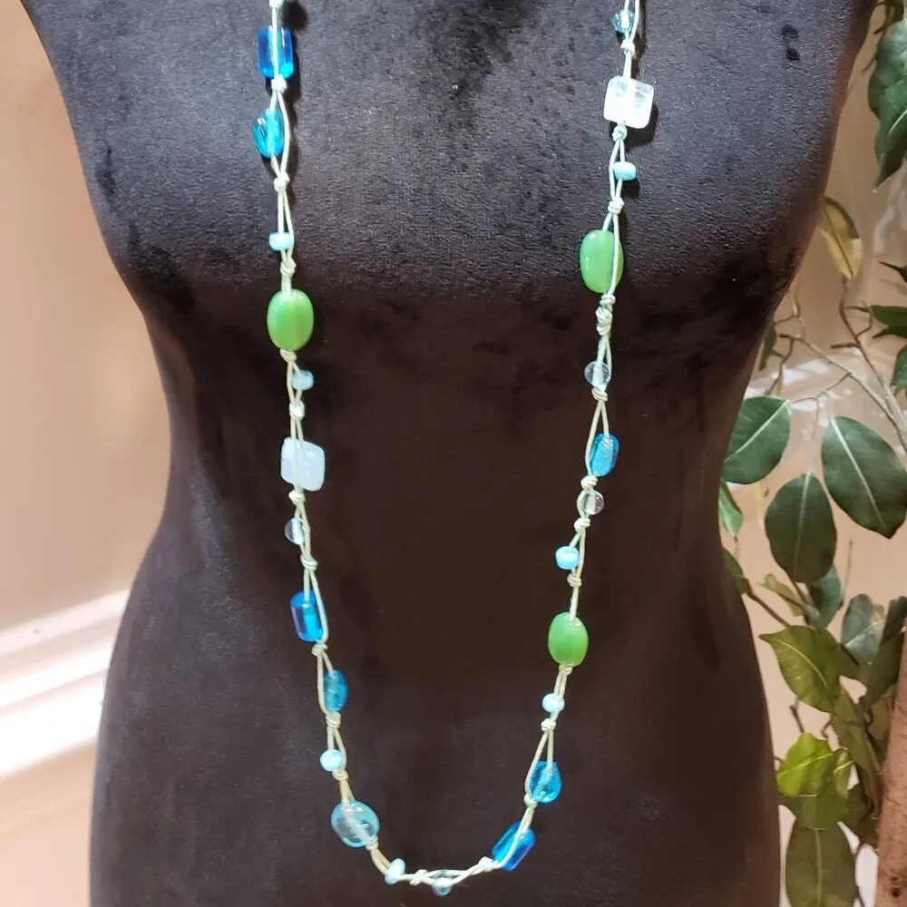 . Color: Green & Blue Type: Necklace Department: Women's Occasion: Partywear, Anniversary, Birthday, Christening, Christmas, Engagement, Graduation, Mother's Day, Valentine's Day, Wedding Disclaimer: Please be aware that vintage/estate jewelry items may show signs of wear and age due to their historical nature. Any imperfections or variations in appearance should be considered part of their charm and uniqueness. It's recommended to carefully examine the item's condition and ask for detailed information before making a purchase decision.