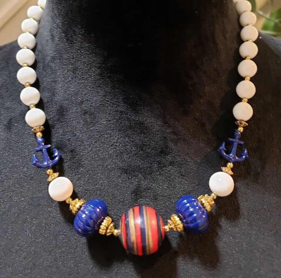 . Color: White & Blue Type: Necklace Department: Women's Occasion: Partywear, Anniversary, Birthday, Christening, Christmas, Engagement, Graduation, Mother's Day, Valentine's Day, Wedding Disclaimer: Please be aware that vintage/estate jewelry items may show signs of wear and age due to their historical nature. Any imperfections or variations in appearance should be considered part of their charm and uniqueness. It's recommended to carefully examine the item's condition and ask for detailed information before making a purchase decision.
