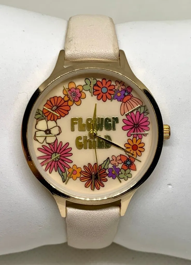 Women’s floral dial women’s watch gold tone 36mm round quartz leather running - $16 - From Watch