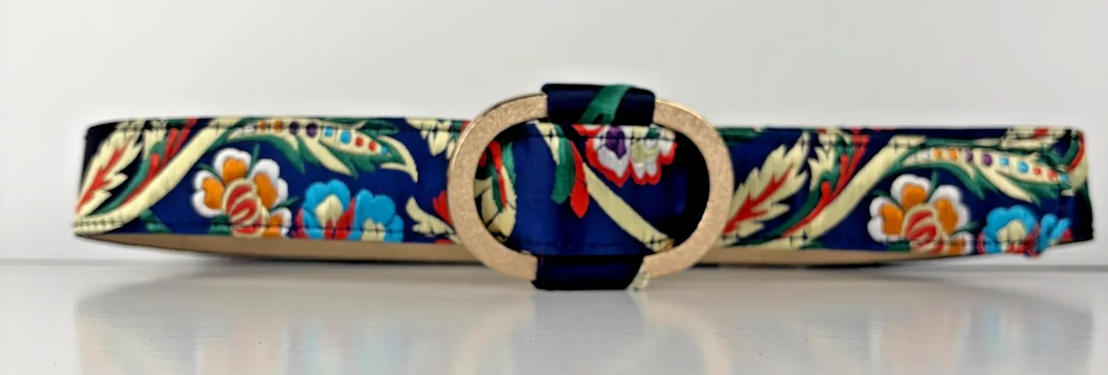 Women's Floral Satin Embroidered Belt Gold Oval Buckle Boho Vintage Style 35" * Condition: Good pre... Show more
