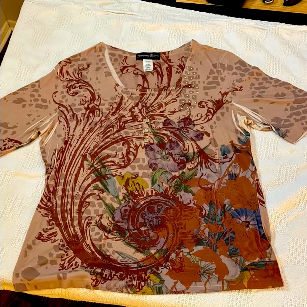 Women's Floral Swirl Blouse - Brown and Tan with mini Rhinestones Size XL - $21 - From Jana