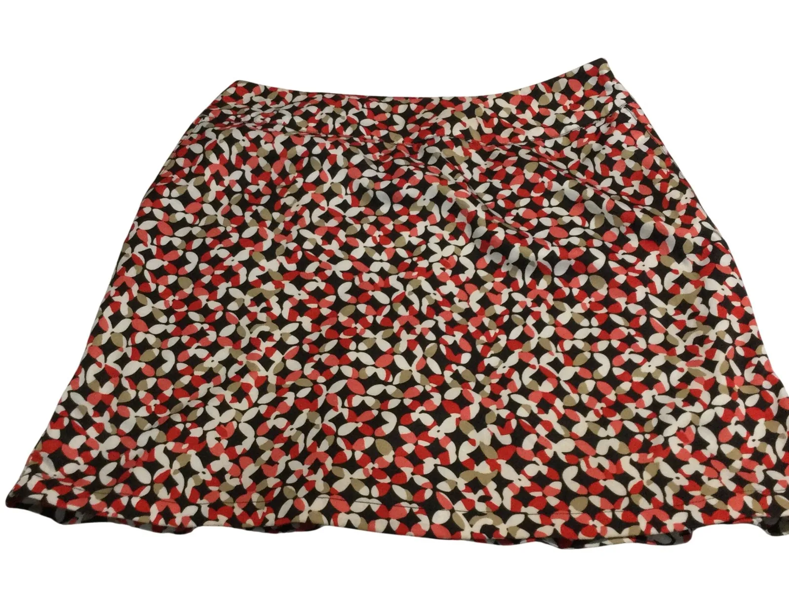 Discover a vibrant geometric print skirt that adds a playful pop to any wardrobe. This A-line skirt features a flattering silhouette that moves beautifully with every step. The eye-catching pattern in black, red, tan, and white creates a sophisticated yet fun aesthetic. Perfect for a casual day out, a work-appropriate ensemble, or a lively evening with friends. Measurements: • Waist: 17 in • Length: 19 in Type: Skirt Style: A-Line Skirt Length: Knee Length Department: Women Material: Polyester Pattern: Geometric Accents: Zipper, Button Fabric Type: Knit Features: Stretch, Lined Closure: Zip Rise: Mid Occasion: Casual Season: Spring, Summer, Fall Unit Type: Unit Keywords: A-line skirt, knee length, geometric pattern, black red tan, women's fashion, casual wear, workwear, flattering silhouette, versatile style, modern print, comfortable fit