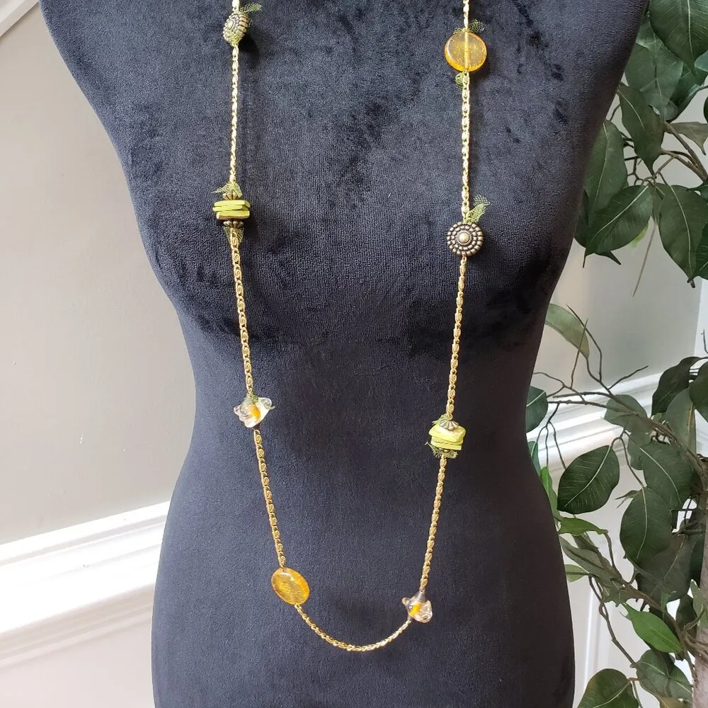 . Color: Gold & Yellow Type: Necklace Department: Women's Occasion: Partywear, Anniversary, Birthday, Christening, Christmas, Engagement, Graduation, Mother's Day, Valentine's Day, Wedding Disclaimer: Please be aware that vintage/estate jewelry items may show signs of wear and age due to their historical nature. Any imperfections or variations in appearance should be considered part of their charm and uniqueness. It's recommended to carefully examine the item's condition and ask for detailed information before making a purchase decision.