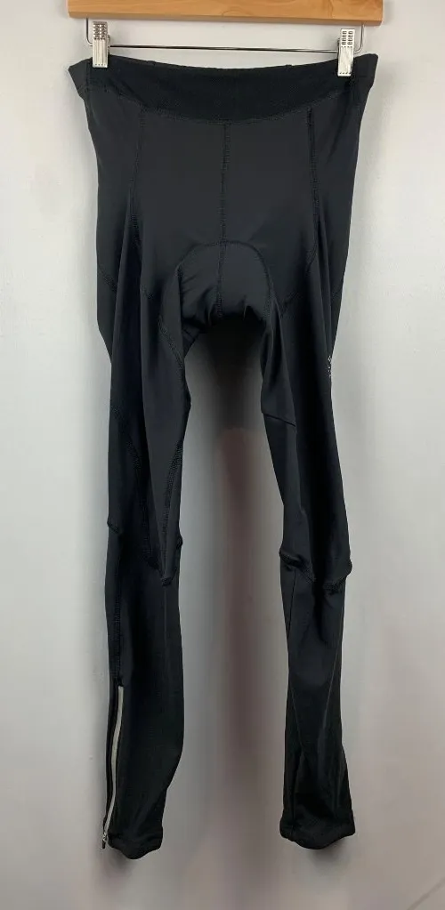 Material: Nylon, Polyester, Elastane Material Thickness: Material is thick and has some stretch. Padding underneath the private area. Back pocket with 2 side zippers near the ankles. Measurements Below: Length: 36.5” Inseam: 29” Waist: 14” Hip Bust: 17” Ankle: 5” Size: Womens XL Condition: Pre-Owned Good