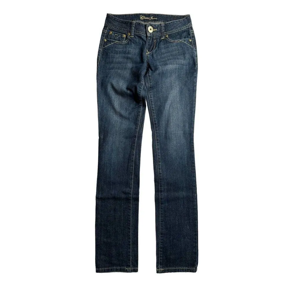 Women's GUESS Gold Rhinestone Bling Logo Pocket Low Rise Skinny Jeans with Stretch - Style #Q0940980... Show more