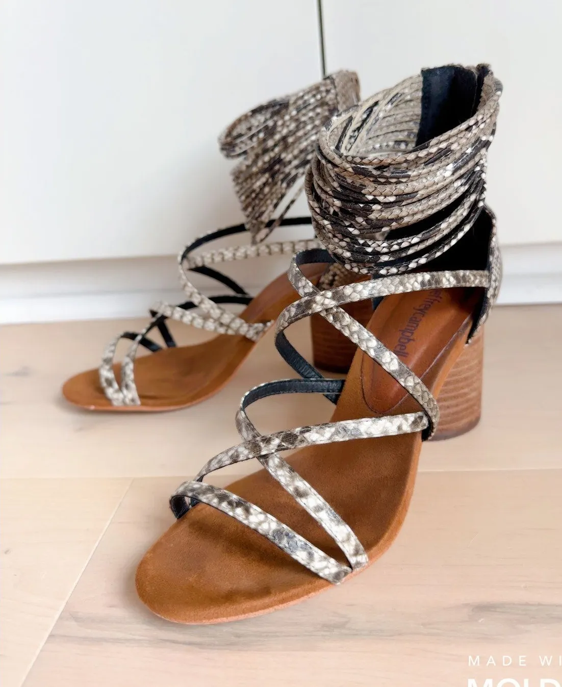 Free People x Jeffrey Campbell Despina Heel Sandal Snakeskin Sz 6 Python Print Details: Pre-owned m... Show more