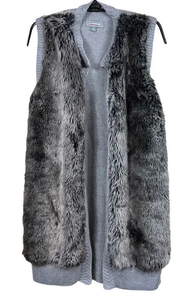 Women’s Johnston & Murphy Angora Wool Blend Faux Fur Vest with Grey Knit Gray Size M - $18 - From Buy Ma