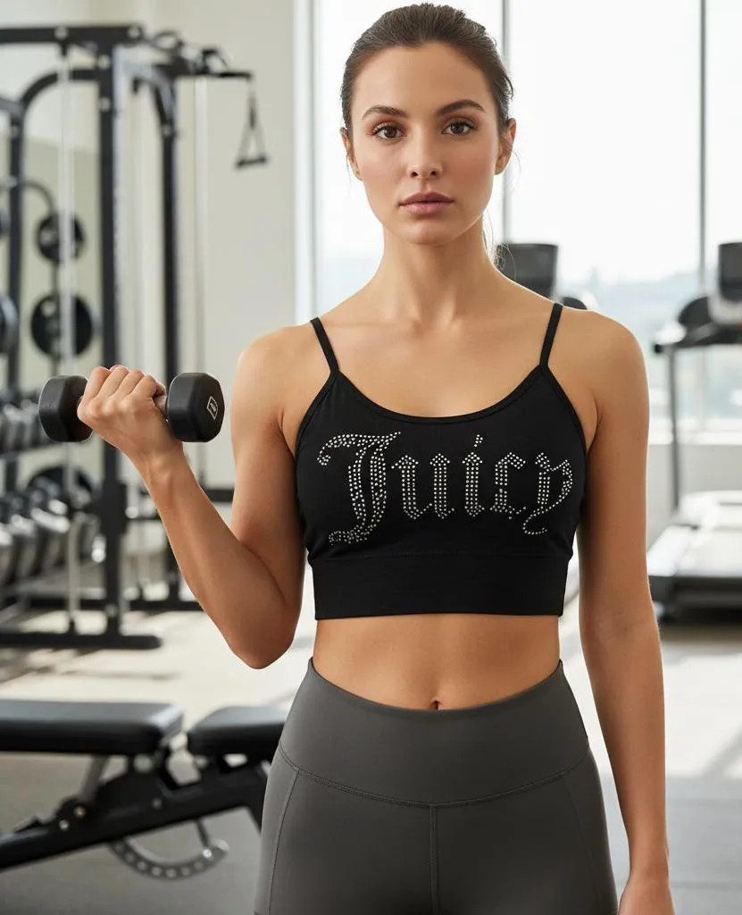 Elevate your workout wardrobe with the Women's Juicy Couture Black Silver Rhinestone Sports Bra S. T... Show more