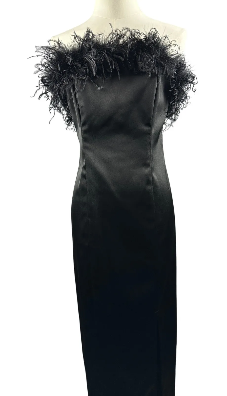 Satin feel Bodice has stretch to it Can be a juniors size 5/6 Or women’s size small Jump Apparel Co. By Wendy Chaitin is a vintage brand sold at The Bon Marche in the 90’s Classic long dress with 25” slit on one side Length 51” Width at top across 15” Waist 13” Hip to hip 17”